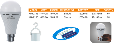 XBZ Emergency LED Bulb 15+2W/18+2W With Battery B22 lamp Base