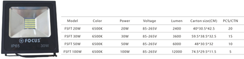 FOCUS FSFT Series Waterproof IP65 Flood Light Outdoor Lighting 20/30/50/100W