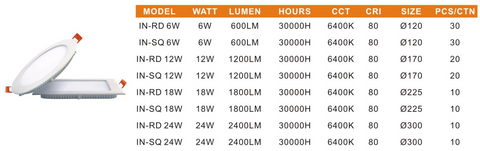 FOCUS Insert Series Panel Light Round Or Square Shape 6/12/18/24W Options