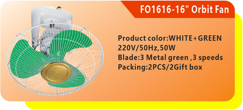 High Quality FOCUS FO1616 16 Inch Orbit Fan Quite Ceiling Fan White Green Color