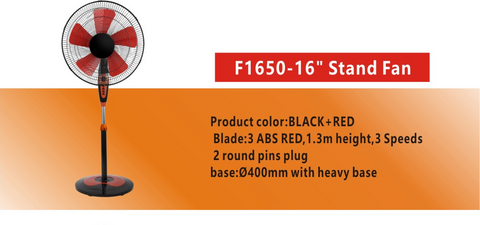 FOCUS F1650 16 Inch Stand Fan With 3 ABS Red Blades