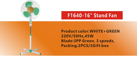 FOCUS F1640 White+Green 16 Inch Stand Fan