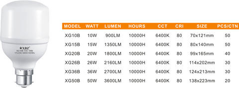 XBZ LED T Bulb Series 6/10/15/20/26/36/50W B22/E27 Light Base