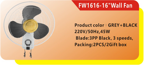 FOCUS High Quality 16 Inch Wall Fan With 3 PP Black Blades